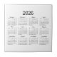 2026 Simple Minimalist Calendar Template - Sunday Start - Clean Black and White Grid Layout