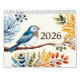 A whimsical illustration of a bird perched on a branch, surrounded by four distinct seasons calendar. The bird's plumage transitions from winter's icy blues and whites to spring's vibrant blossoms, summer's warm yellows, and autumn's leaves, showcasing the cyclical beauty of the seasons. The calendar is adorned with flowers and leaves that match each season, creating a sense of harmony and balance.