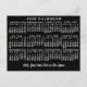 This 2026 year calendar postcard shows the days of the week for each month in white on a black background. It's the perfect minimalist monthly calendar if you're looking for a simple, classic professional feel. Always know what date it is and check the days of the week with this simple, easy-to-read calendar. Easily add a line of custom text along the bottom, such as your business contact information. The back of the postcard can also be customized.