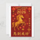 The front of the card showcases “Happy Chinese New Year 2026” alongside the Chinese phrase 馬到成功 (“Success Arrives with the Horse”), while the back of the card offers a refined red and gold greeting with the Chinese characters 新年快乐 (“Happy New Year”).