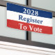 At the top of this red white and blue banner is the year in white text. You can change the year if necessary. The rest of the banner says 'Register to Vote'.