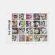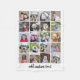 A design with a basic background. Use up to twenty square photos to create a unique and personal gift. a standard 4 x 5 grid with an area to add text. If you need to adjust the pictures, click on the customize tool to make changes.