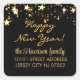 Black background with shiny gold stars, elegant gold script "Happy New Year" greeting and name with gold typography address decorates these stylish matching square return address stickers. Minimum purchase is only one sheet of twenty 1.5" or six 3" stickers. Easily change the text using the Template provided. If you need more space for the address use lowercase letters. Printed on white acid-free paper. Vibrant full-color, full-bleed printing.