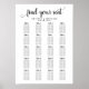 Simple Elegant Calligraphy Script Wedding Reception Find your seat. A minimalist design in black and white or any background colour you choose. Just click the customize further link, shown under the text personalization area on the right, and choose your custom colour background. This sign poster template makes it fast and easy to create stunning additions to your wedding decor. Signs can be enlarged, there are many sizes to choose from, as well as options for custom framing and matting.