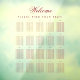 All text is burgundy red. The word Welcome is written in an elegant calligraphic script, the rest in caps. The 20 tables are on 4 rows x 5 columns. It is portrait oriented. Above them and under the word Welcome, there is the message "Please find your seat!".