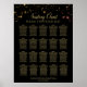 Faites de votre réception de mariage une belle avec ce tableau de sièges. Conçu dans le cadre de notre Suite Mariage Shimmering Sparkles, il présente un design élégant mais fantaisiste d'étoiles roses et dorées avec du texte doré sur un arrière - plan noir. Ce graphique montre les affectations de table afin que vos invités aient un temps facile à trouver la bonne table.
