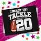 This football birthday design is perfect for a 20th birthday football theme birthday party to celebrate turning 20 years old! Features 'Ready To Tackle 20' 20th birthday football quote with football graphic. Perfect for anyone who loves football turning 20 years old!