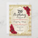 Invitation du 20e anniversaire. Design élégant en or et rouge. Comprend des bandes d'or de parties scintillant fausse, des roses rouges police de caractères stylisés et des confettis. Parfait pour une fête d'anniversaire glam.