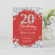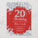 Invitation du 20e anniversaire. Arrière - plan en damier diamant rouge et argenté. Élégant invitation du Bassin d'Anniversaire. Noir et Blanc. Anniversaire adulte. Les femmes, anniversaire. Hommes Anniversaire.