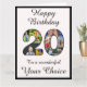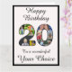 La façade de cette carte de voeux classique à thème 20ème anniversaire grand design comporte le numéro "20" rempli de 9 de vos photos. Le message "Joyeux Anniversaire" est placé en haut avec les deux ensembles inférieurs de texte disponibles pour vous à personnaliser. Faites-en une carte personnalisée unique pour votre meilleur ami, fille, partenaire, gardien de but etc, le choix est à vous. L'intérieur comporte des messages d'anniversaire personnalisés sur les deux pages, ou peut-être qu'ils pourraient être effacés et laissés en blanc si un message doit être écrit à la main à la place. Une carte d’anniversaire personnalisable comme celle-ci est une façon amusante d’envoyer un message pour célébrer le vingtième anniversaire de quelqu’un. La photo utilisée comme exemple sont toutes des images carrés avec la figure principale approximativement centrale. Le design est disponible dans une gamme complète de tailles jusqu'à la carte géante. Pop dans notre magasin pour plus de cartes d'anniversaire et des idées cadeaux.