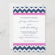 20èmes invitations de fête d'anniversaire de coutume dans le bleu marine élégant et assez foncé, l'amusement rose et blanc lumineux fuchsia et le motif de zigzags moderne de chevron. Ajoutez vos détails de nom et de partie pour 20ème une invitation unique et élégante de fête d'anniversaire.