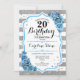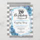 Elegant design in faux glitter silver, white and turquoise aqua blue. Features stylish script fort, stripes and blue roses. Perfect for an elegant birthday party. Can be customized into any age.