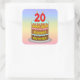 20th Birthday: Fun Cake and Candles + Custom Name Square Sticker