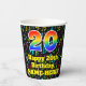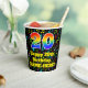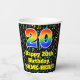 This joyful and colourful music-themed birthday paper cup design features a large number “20” with a rainbow spectrum gradient inspired pattern, along with the message “Happy 20th Birthday,”, and a personalized name. The background features a multicolored pattern having music notes and symbols of various sizes and colours. Vibrant, colourful paper cups like this might be fun to have at a birthday celebration/party being held in celebration of somebody’s 20th birthday. [~Z0000541]