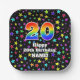 20th Birthday: Fun Stars Pattern and Rainbow “20” Paper Plate