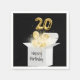 Gold balloons with sparkles and ribbons in a white box on black background for 20th birthday party.
