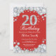 20th Birthday Invitation. Red and Silver Rhinestone Diamond Chalkboard Background. Elegant Birthday Bash invite. Black and White. Adult Birthday. Women Birthday. Men Birthday. For further customization, please click the "Customize it" button and use our design tool to modify this template.