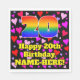 This joyful and fun birthday paper napkin design features a large number “20” having a rainbow spectrum gradient inspired pattern. It also features the message “Happy 20th Birthday,”, and an editable name. The background features a pattern of purple, red, and pink heart shapes. Happy, upbeat paper napkins like this might be fun to have at a birthday party/celebration being held in celebration of somebody’s twentieth birthday. [~Z0000550]