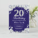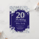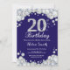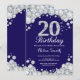 20th Birthday Navy Blue and Silver Diamond Invitation