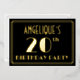 The front of this Roaring Twenties inspired and vintage-look twentieth birthday celebration foil invitation features an editable name, a large art deco style inspired number “20th”, the message “BIRTHDAY PARTY”, and a border pattern consisting of lines. There is a black-coloured background on the front by default, but it can be customized to a different colour if desired. The back features personalized details about the event, such as the date, time, venue, and any other information that may be important. Elegant, luxurious, editable invitations like these might be used to invite guests to a birthday gathering being held to honour somebody’s 20th birthday. [~Z0000591]