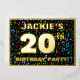 The front of this exciting twentieth birthday celebration/party foil invitation card design features an editable name, a large number “20th”, the message “BIRTHDAY PARTY!”, and a border. The background of the front has an eye-catching, colourful pattern of music notation symbols. The back features personalized details about the event, such as the date, time, venue, and any other information that may be useful. Personalized invitations like these might be a fun way to invite attendees/guests to a birthday party/gathering being held to honour somebody’s 20th birthday. These might be extra special if that person is a composer, a songwriter, a musician, a singer, or appreciates music. [~Z0000601]
