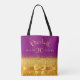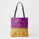 A faux gold coloured ribbon and bow with golden glitter and sparkle, a bit of bling and luxury for a 20th birthday gift. Violet, purple coloured background. Templates for her name, curved text, age, date of birth and anniversary date.