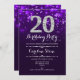 Elegant purple white design with faux glitter silver. Adult birthday. Features diamonds and script font. men or women bday invite. Perfect for a stylish birthday party. Message me if you need further customization.