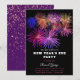 A modern and elegant New Year's eve invitation featuring colourful fireworks on black background and purple glitter on the back. This colourful invitation card captures the spirit of New Year's Eve. Perfect for inviting your friends and loved ones to celebrate new year's eve.
