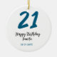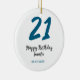 21 birthday bold blue letter simple minimal ceramic ornament