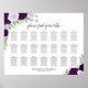 Ce magnifique tableau de 21 tables en mariage apportera élégance et style rustique à votre journée spéciale. Avec une capacité de 210 couverts (10 couverts par table), cette disposition traditionnelle facilitera la recherche des tables qui vous sont attribuées, tout en ajoutant un air de beauté, de grâce et de charme. Le design boho chic et floral rustique présente des roses aquarelles peints à la main dans des tons de violet royal, de lavande et de prune, complétés par des sprigs d'eucalyptus feuilles et de verdure du jardin. Il y a un titre de calligraphie de script élégant, et les noms du couple et la date mariage apparaissent en bas.