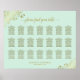 Cette belle carte de sièges aidera vos invités à trouver leurs tables assignées à votre réception de mariage. Il présente un design simple mais élégant avec du texte doré sur un arrière - plan vert clair ou de couleur néo-menthe. Le titre est écrit en calligraphie script lettering et dit : s'il vous plaît trouver votre table. Le graphique est décoré d'une feuille d'or frileusement florale fausse feuille dans les coins. Contient des sièges pour 21 tables à 10 personnes par table ou 210 personnes.
