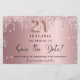 Une petite fille et tendance Enregistrer la carte Date pour une fête de 21e anniversaire. Arrière - plan de dégradé rose vif décoré avec des gouttes et de la poussière rose poussiéreuses rose et faux argent. Personnalisez et ajoutez une date et un nom/texte. Le texte : Save the Date est écrit avec un grand script de style à la main tendance. Numéro 21 avec une police de style ballon.