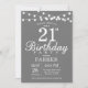 21ème anniversaire Invitation avec lumières à cordes. Arrière - plan gris. Hommes ou Femme Lady Élégante Invitation anniversaire. 13ème 15ème 16ème 18ème 20ème 21ème 30ème 40ème 50ème 60ème 70ème 80ème 90ème 100ème, Tout âge. Pour plus de personnalisation, cliquez sur le bouton "Customiser" et utilisez notre outil de conception pour modifier ce modèle.