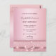 Une invitation moderne, élégante et glamour pour la fête du 21e anniversaire d'une jeune femme. Un arrière - plan métallique à l'apparence rose à l'or faux avec un élégant arc rose en or, ruban et étincelant. Le nom est écrit avec un rose moderne de couleur or foncé à la main écriture style. Modèles pour les détails de votre fête. Conseil : Si vous ne voulez pas qu'il ressemble à une carte postale, cliquez sur customiser, allez à l'arrière et retirez le séparateur et le timbre postal.