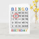21st Birthday card. Say Happy Birthday to a bingo player with a bingo card. The age is circled in red. A bingo crazy player will get a huge kick out of this card! Copyright Norma Cornes.