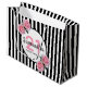 21st birthday black stripes pink roses name large gift bag