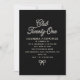 Elegant black and white invitation features white pearl script and a tiny pearl bow on a black background. Club Twenty-One gives it a hip, trendy vibe, while the bow at the bottom adds elegant femininity.