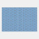 The number 21 patterned and "Happy Birthday" accents at an angle create a simple modern 21st birthday wrapping paper. A blue background with a pattern blue, black and white typography.
