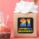 This colourful, cheerful, and fun birthday themed sticker design features a large number "21" and the message "HAPPY BIRTHDAY,", both having a rainbow spectrum gradient inspired pattern colouring, along with a bold yellow customizable name. The background is coloured black. Fun birthday themed stickers like this could be used when wrapping a gift or present being given to celebrate somebody’s 21st birthday, or perhaps maybe be handed out to the guests at a birthday celebration or party. [~Z0000480]