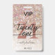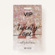 Modern chick 21st Birthday VIP badge. Design featuring champagne sparkly glitter texture, twenty one in trendy handwritten script in black and rose gold colour. Personalize with your details in block capital lettering.