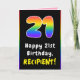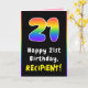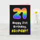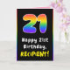 21st Birthday: Colourful Rainbow # 21, Custom Name Card