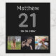 For a 21st birthday party. A collage of 3 of your photos of himself friends, family, interest or pets. Personalize and add his name, age 21 and a date. Date of birth or the date of the birthday party. Grey and white coloured text. Black background.