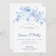 Elegant blue rose floral 21st birthday dinner party invitation.