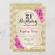 21st Birthday - Gold Stripes Pink Roses Invitation