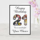 The front of this classical themed 21st birthday greeting card design features the number "21" filled in with 9 of your photos. The message "Happy Birthday," sits at the top with the two lower sets of text available for you to personalized. Make this a unique custom card for your best friend, daughter, partner, goalkeeper etc, the choice is yours. The inside features a personalized birthday greeting messages on both pages, or could perhaps be cleared and left blank if a message is to be written by hand instead. A customizable photo birthday card like this is a fun way to send a message in celebration of somebody’s twentieth birthday. The photo's used as examples are all square images with the main figure approximately central. The design is available in a full range of sizes right up to the giant size card. Pop in to our store for more great birthday cards and gift ideas.