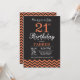 21st Birthday Invitation with Black and Coral Chevron. Chalkboard. Adult Birthday. Man or Women Bday Invite. For further customization, please click the "Customize it" button and use our design tool to modify this template.