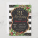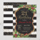 21st Birthday Invitation for women. Christmas Birthday Party Invite. Christmas Floral Flower. Black, Red and Gold Glitter. Black and White Stripes. Printable Digital. For further customization, please click the "Customize it" button and use our design tool to modify this template.