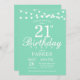 21st Birthday Invitation with String Lights. Mint Green Background. Men or Female Lady Elegant bday Invite. 13th 15th 16th 18th 20th 21st 30th 40th 50th 60th 70th 80th 90th 100th, Any age. For further customization, please click the "Customize it" button and use our design tool to modify this template.