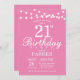 21st Birthday Invitation with String Lights. Pink Background. Female Lady Elegant bday Invite. 13th 15th 16th 18th 20th 21st 30th 40th 50th 60th 70th 80th 90th 100th, Any age. For further customization, please click the "Customize it" button and use our design tool to modify this template.