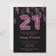 This elegant and glamourous birthday invitation features the number 21 in leopard print with pink confetti. The text combines handwritten script and modern sans serif fonts for a classy and sophisticated look.